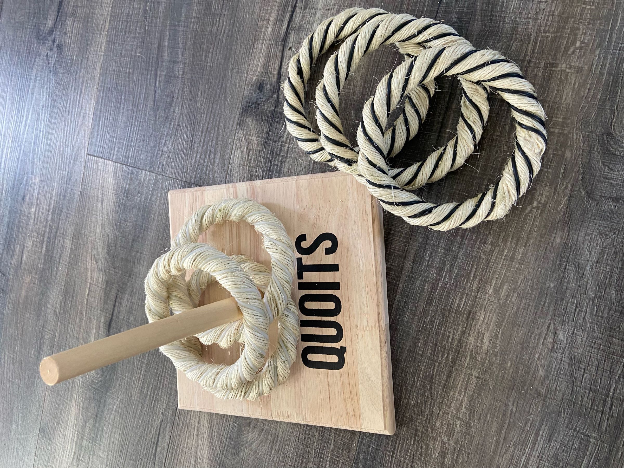 A game of skills and concentration, this wooden quoits set can be set up in the backyard for hours of family fun.